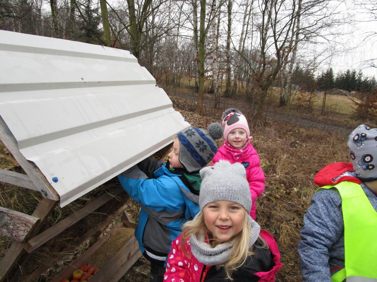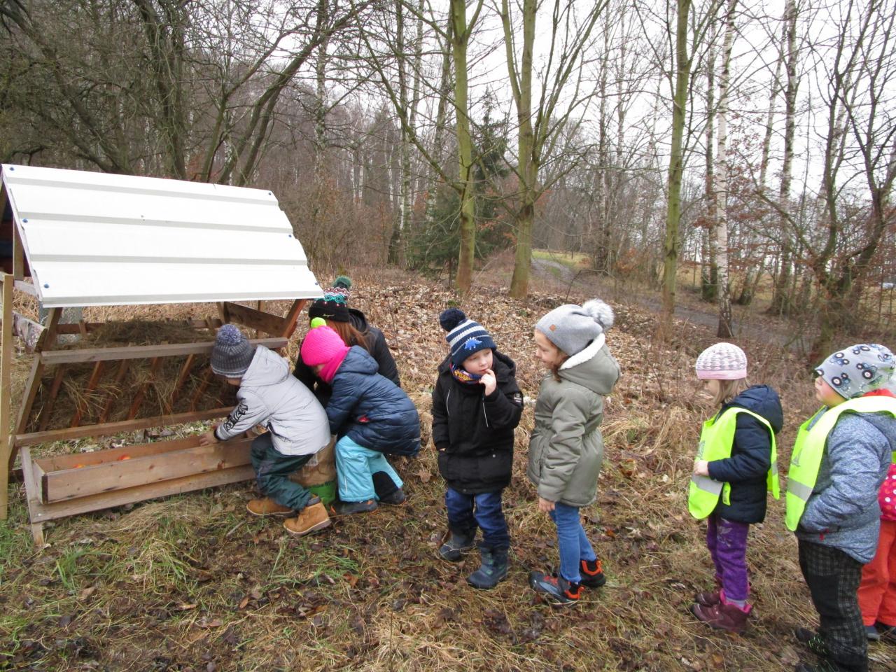 Jak jsme donesli dobroty pro zvířátka do krmelce.